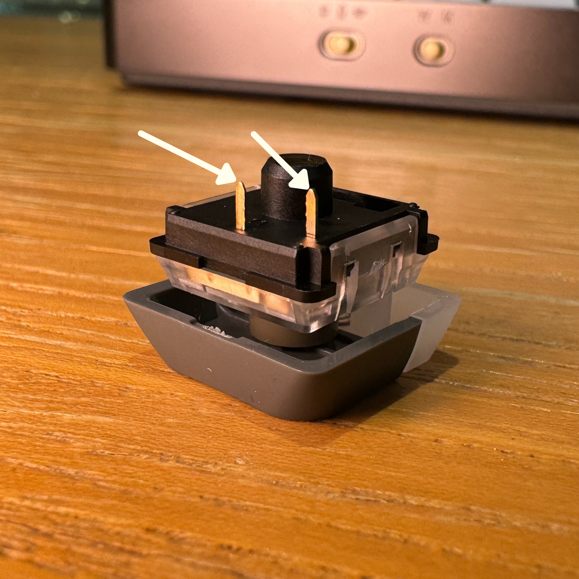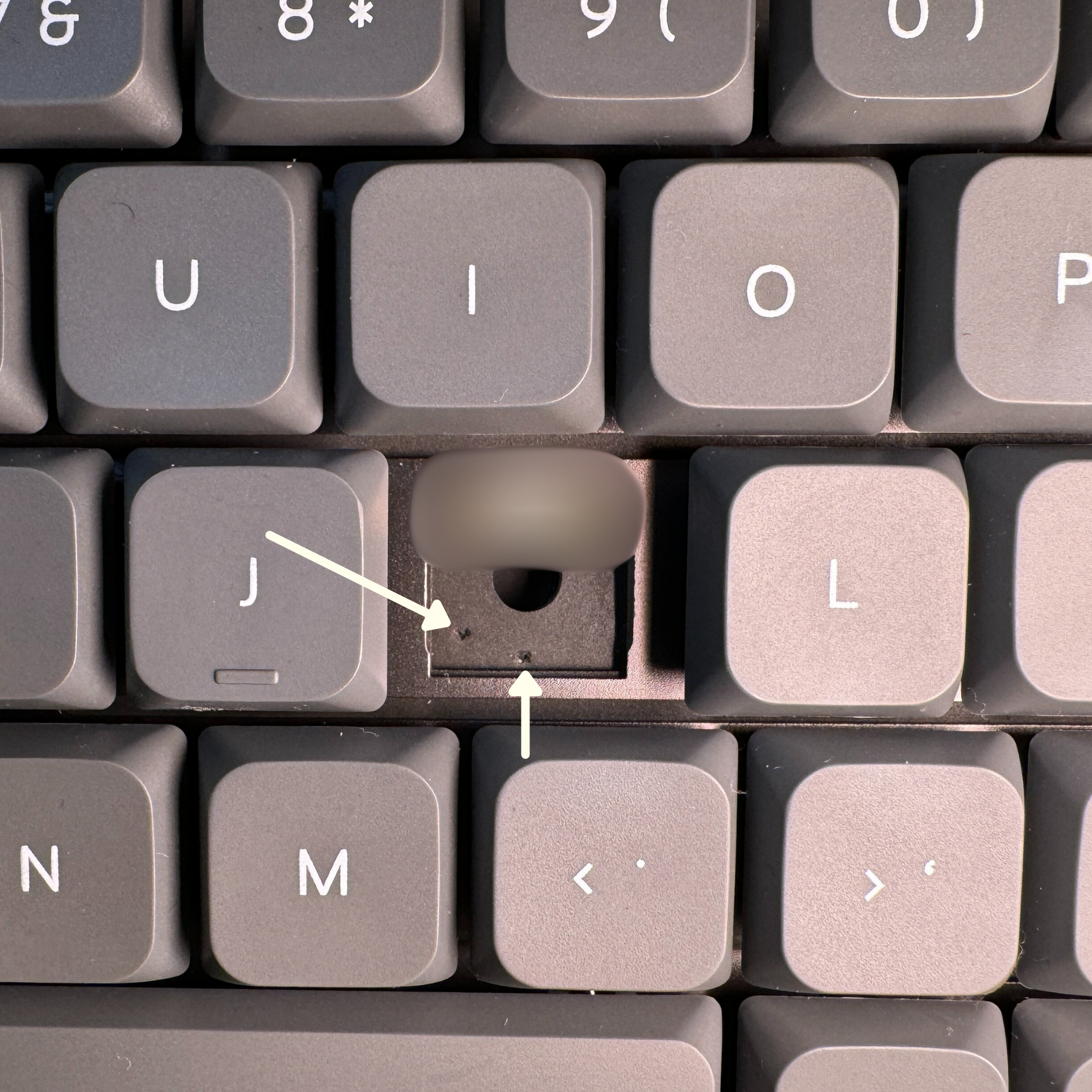 スイッチを組み立てる際は、スイッチの2つのピンがキーソケットの2つの穴に正しく揃っていることを確認してください。