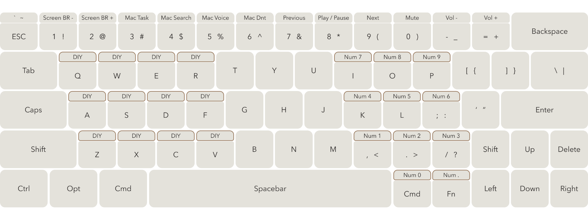 Currently, Hesper64(100) does not support switches from other brands but is compatible with most low-profile keycaps on the market. Please take note.